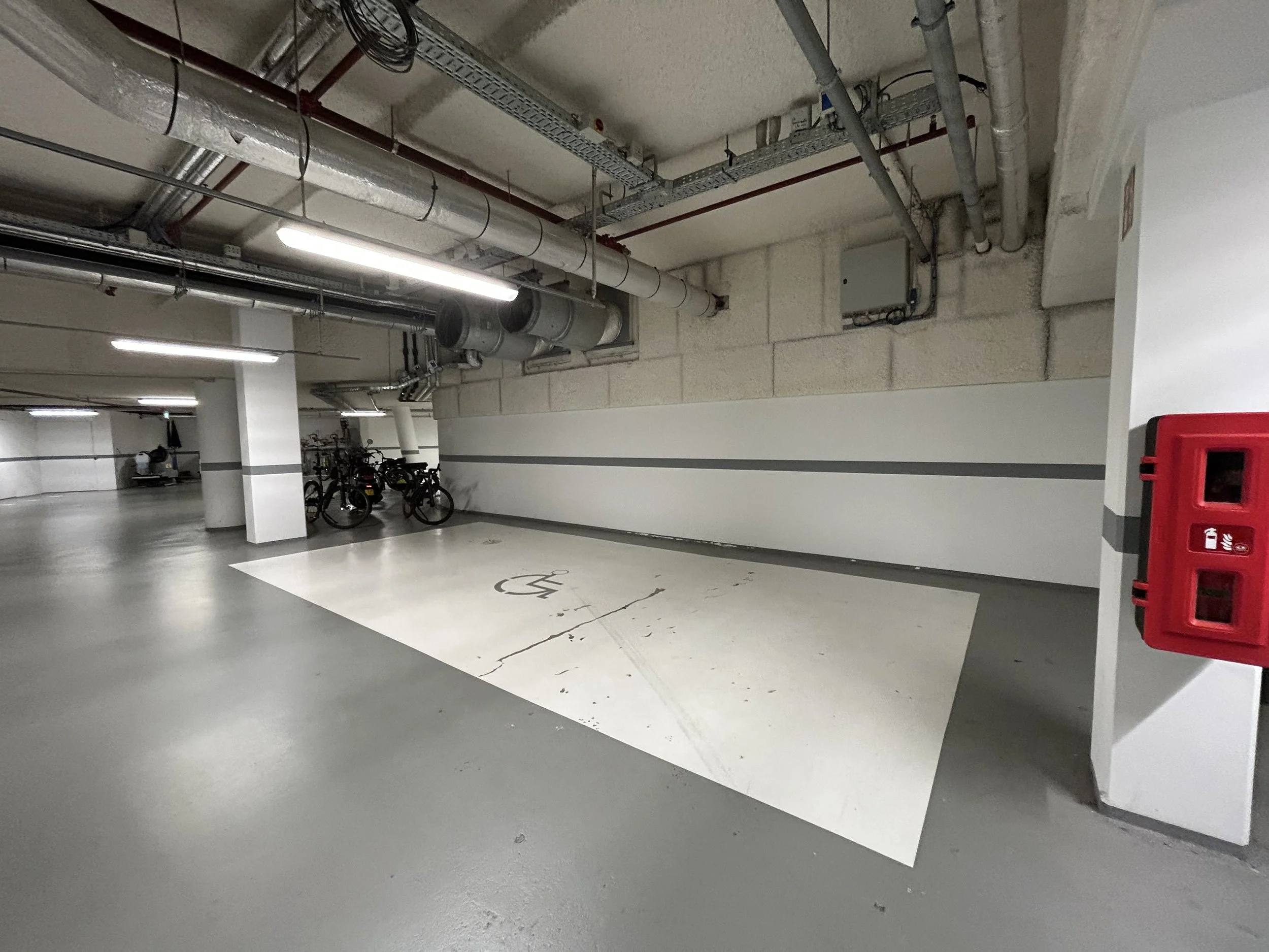 A large disabled parking space in the hotel garage