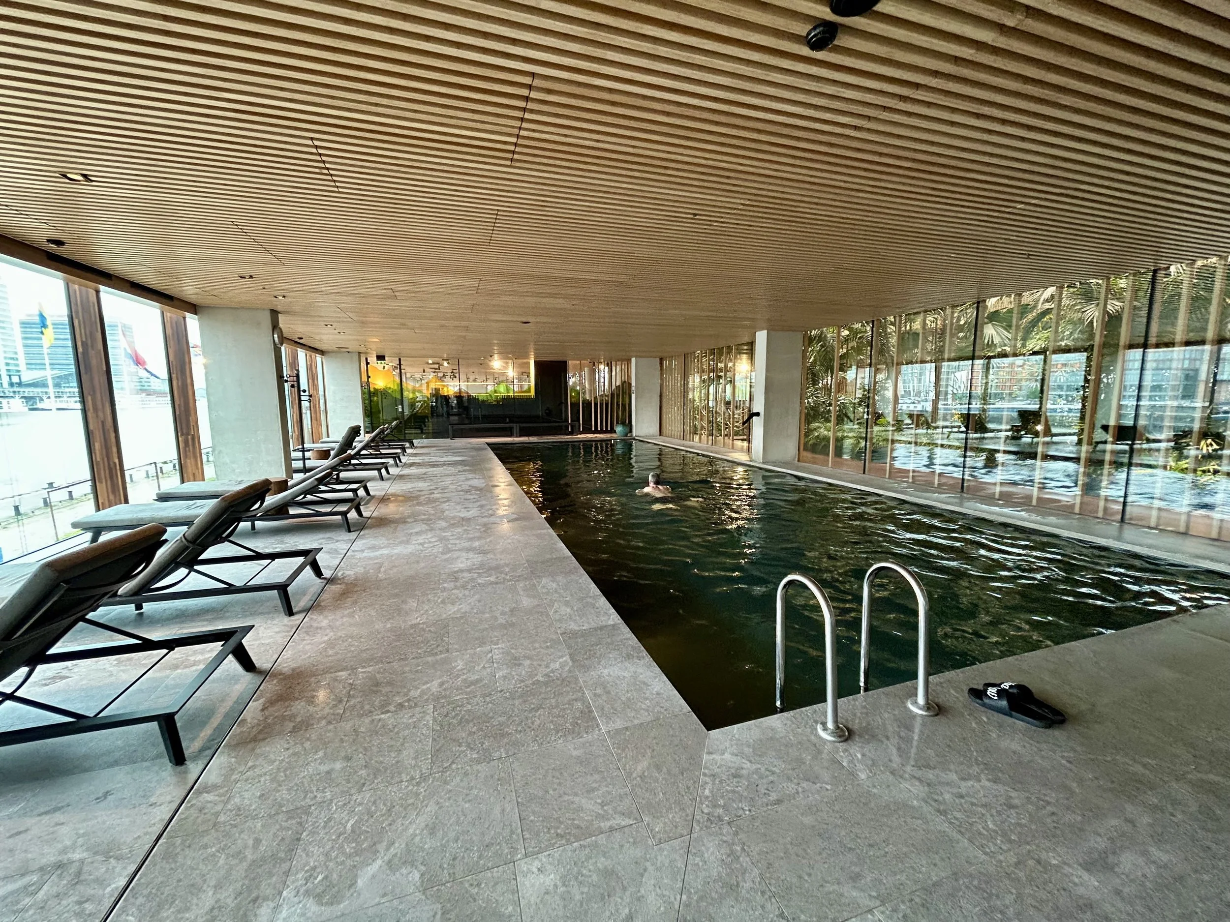 All wellness facilities are step-free — the swimming pool, the sauna, and the changing rooms. Please note however that some of these facilities will not have e.g. wheelchair-friendly showers or changing rooms.