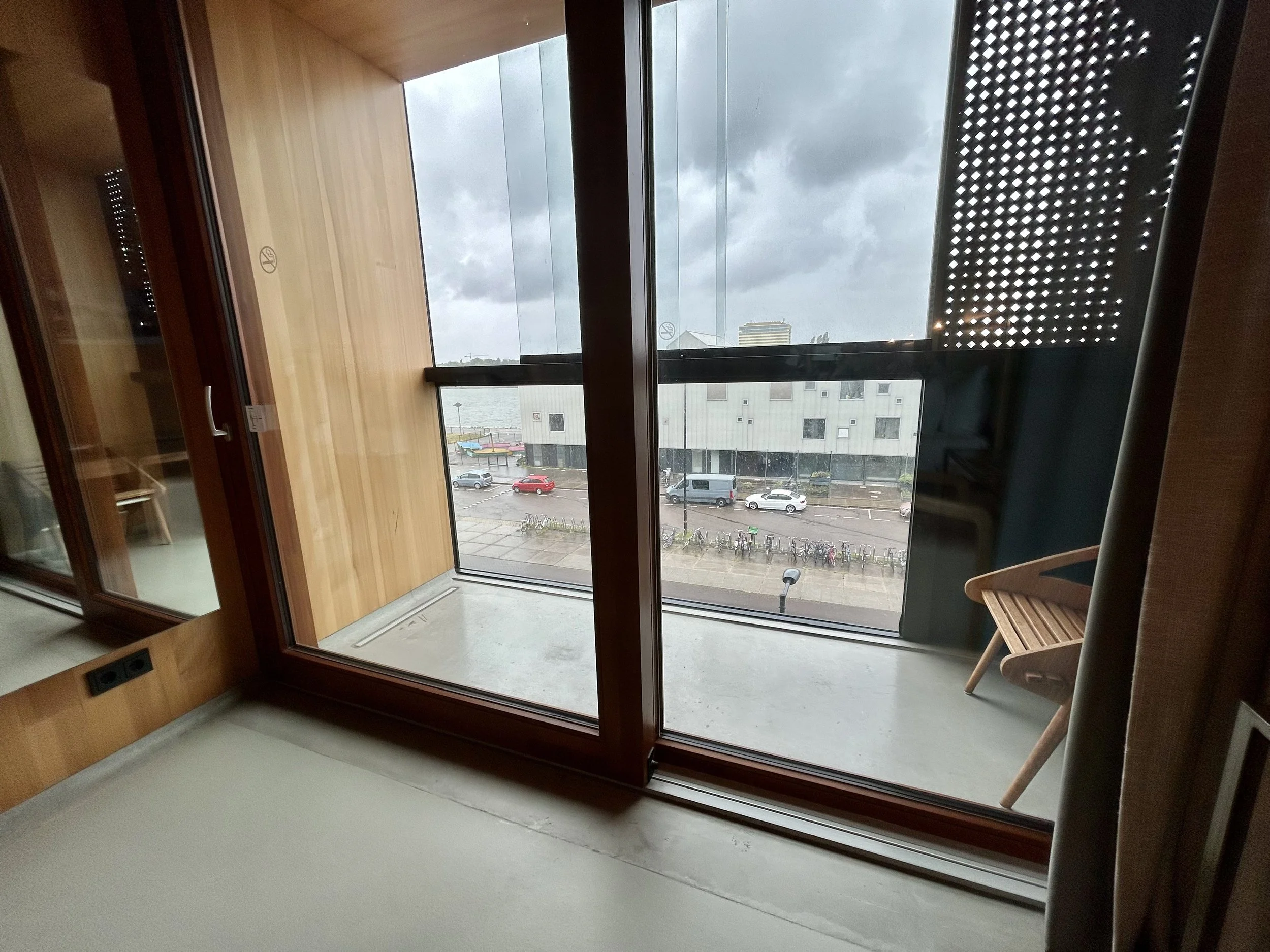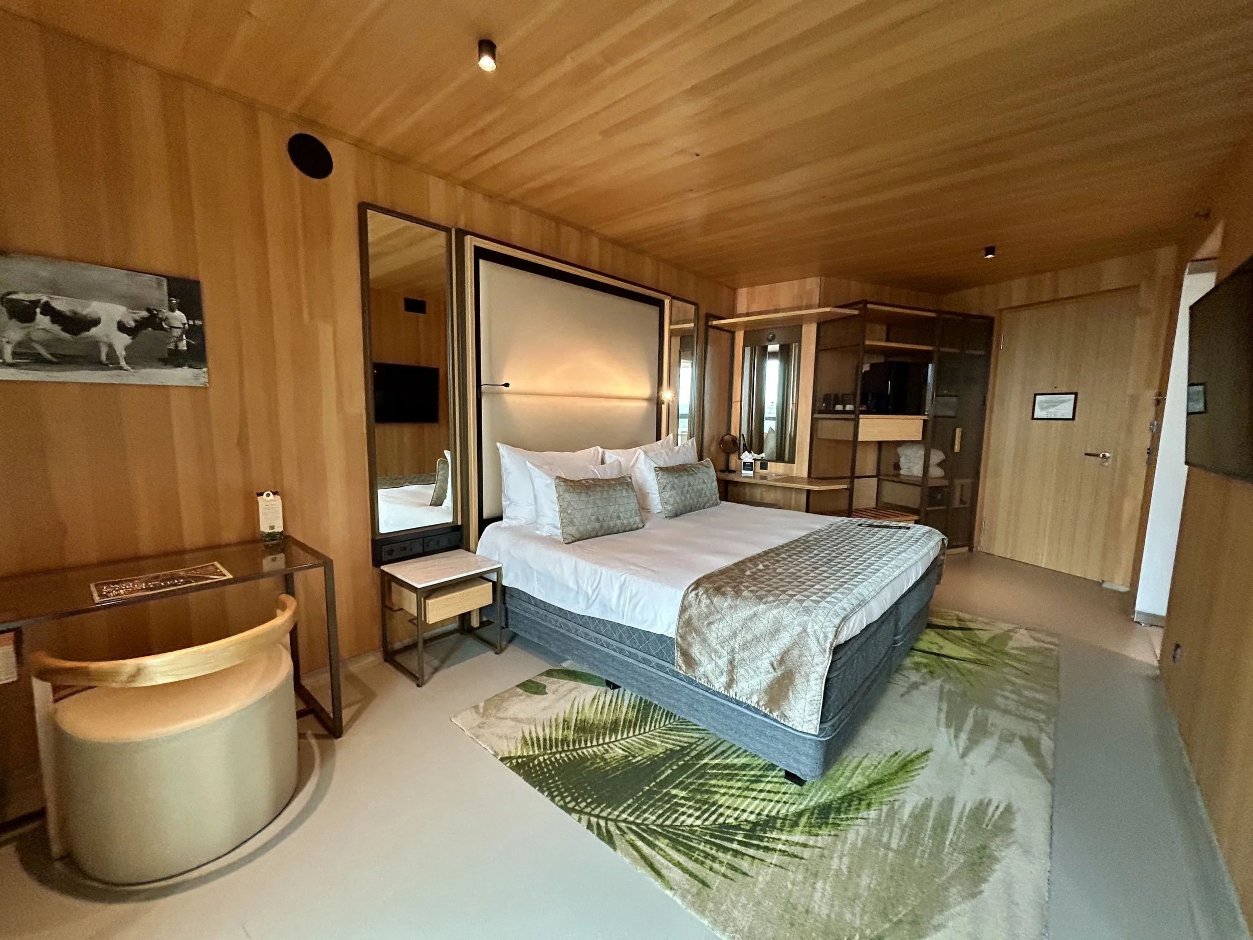 The main hotel entrance is threshold-free. It has a revolving door that can be slowed down or de-activated for easier entry with mobility aids.